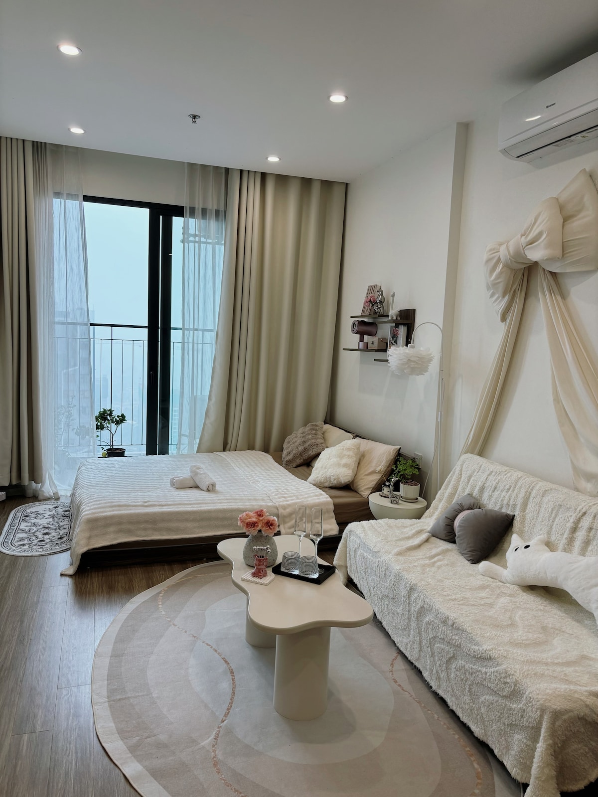 Where art, light, and lakefront serenity meet — a rare designer loft in Ecopark, near Hanoi. A 28th-floor retreat with bold interiors, panoramic views & a Japanese-style private onsen. 📍 30 mins to Old Quarter · 45 mins to Airport — peaceful, family-friendly & surrounded by nature. 🌿 Luxury décor · Pool · Gym · Workspace · Private onsen (50% off Mori Onsen). 💌 Message us for local tips — we’d love to host your skyline escape.