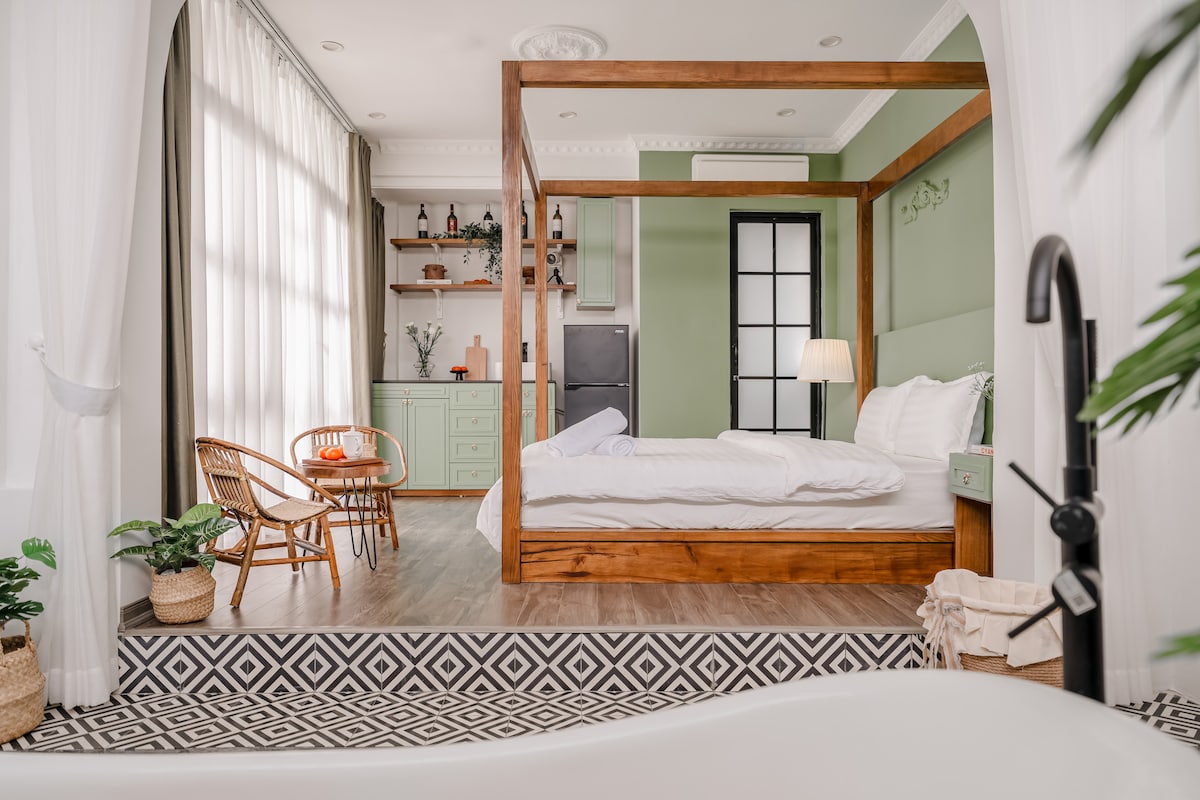 Relax your mind in our brand-new, wooden-covered, minimalist studio apartment while enjoying the evergreen view of Hanoi from our private garden. Meanwhile, discover the history of Vietnam from the imperial to modern times, with surrounding sites such as the Imperial Citadel of Thang Long, B-52 Lake, and Ho Chi Minh Mausoleum. You will stay in a true artist studio, catch photography exhibitions in the gallery on the 3rd floor, and savor the house-made specialty coffee at our in-house café.