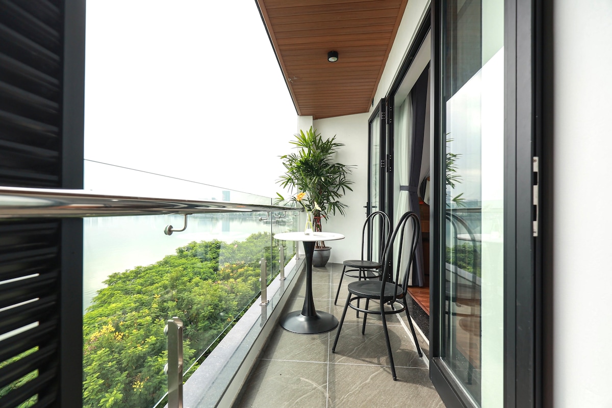 This unique residence has a very unique style. The apartment is located on the 7th floor of the building with an area of 2 floors up to 160m2: - 1st floor 80m2: 1 bedroom, 1 living room + kitchen, 1 bathroom, 1 office, reading room... - 2nd floor 80m2: Miniature garden terrace, BBQ area, full view of West Lake, The view covers the entire Westlake. The view of West Lake is extremely beautiful, guests will not miss the opportunity to watch the sunrise and sunset when staying here with Na <3
