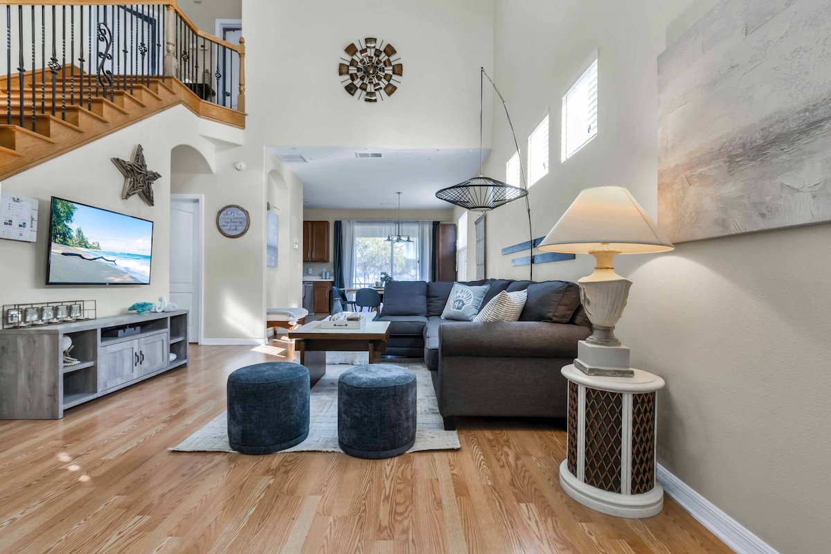 3900 Rosemary Drive is a pet friendly house with parking for 2 cars. Relax & enjoy your own private get away, outside patio area, tiki bar, sun loungers & hot tub. The open plan apartment has an 80” Peacock enabled TV,. Enjoy Netflix, Amazon Prime or other subscriptions that you have by entering your home’s password & pin information. In the lounge area there’s a 2 seater theatre style adjustable settee & a small dining table/ working area with Wi-Fi access and a fully equipped kitchen.