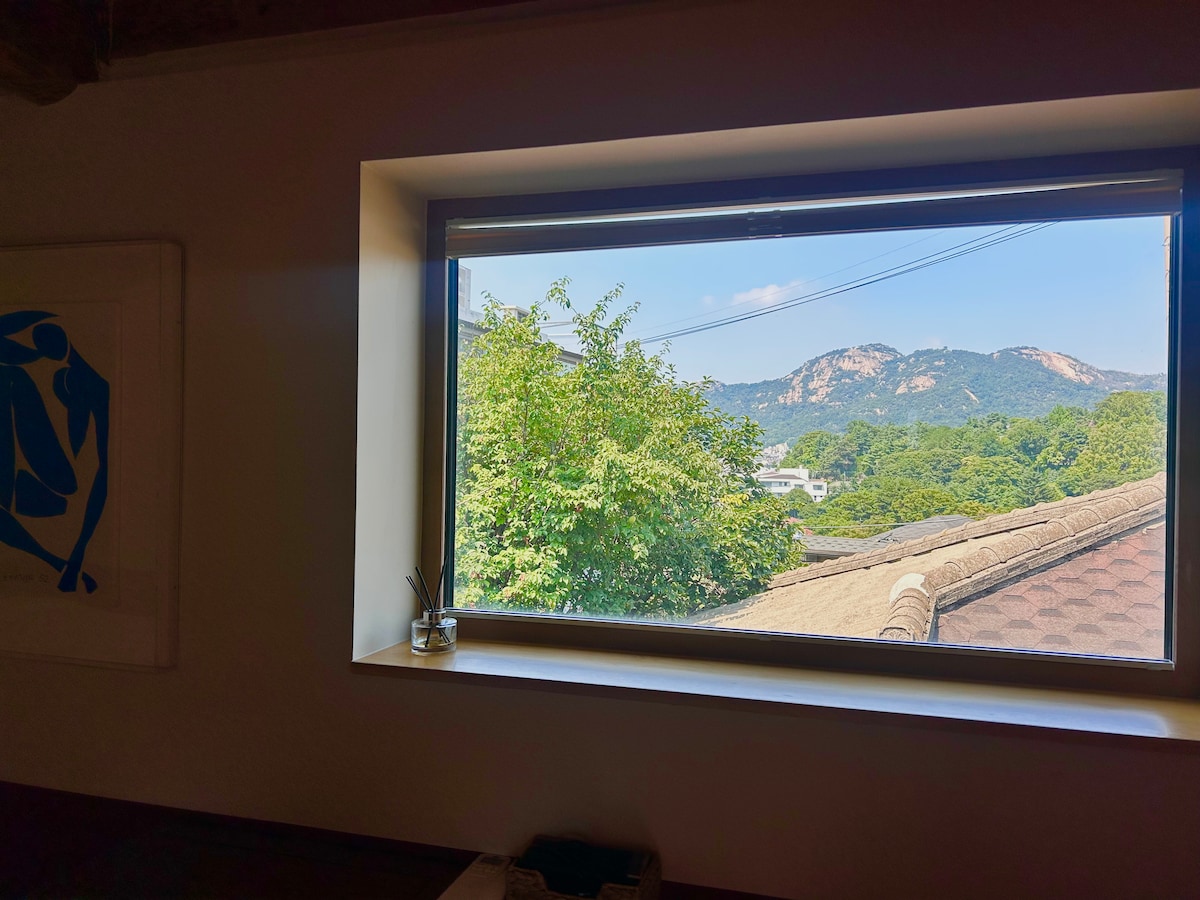 1, 2층의 공간 전체, 2~8명 사용가능, 침실 2 (퀸사이즈 베드 2), 넓은 거실 2 (퀸사이즈 소파베드 2), 화장실 2, 주방 1(조리도구 완비), 12인석 대형 호두나무 식탁(4m), 보드게임, 닌텐도 스위치 게임 보유 주방 - 전기밥솥, 전자레인지, 인덕션, 얼음 정수기, 커피머신 (에스프레소 머신), 조리도구 및 양념, 식기 도구, 와인잔, 냉장고 완비 서울 도심에서 궁궐을 배경으로 묵을 수 있는 가장 아름다운 숙소. 미공개된 창덕궁 후원 비밀 정원지역을 내려다보며 힐링을 즐길 수 있으며, 지하철역과 대중교통 모두 가까워 여행을 위한 편의도 충분. 관리자 10분 거리에 생활 중이라 언제든 필요한 대응 가능. **주차 자리는 따로 없으나, 공영주차장이 도보 5분 거리에 있습니다.