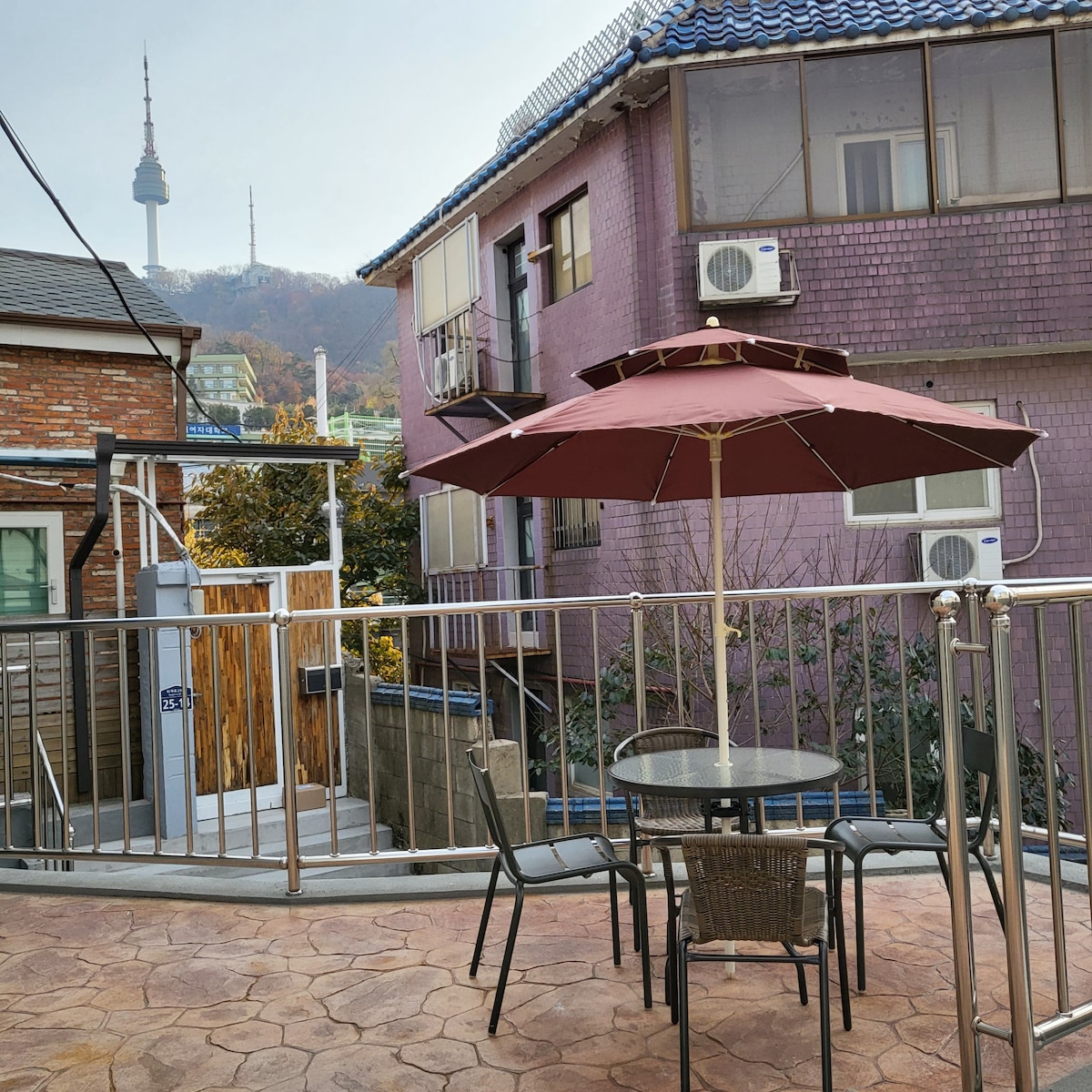 可看到南山塔的屋顶住宿/明洞5分钟,梨泰院5分钟,景理团路1分钟,景福宫10分钟