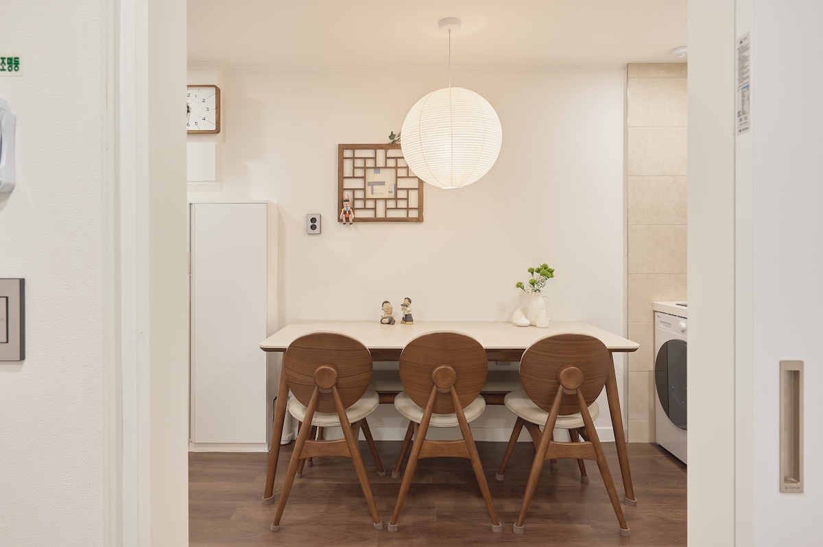 Welcome to our luxurious and cozy home in central Seoul, featuring 3 bedrooms and 2 bathrooms. For a unique, luxurious, and convenient stay, we highly recommend our property. With amenities like L’Occitane products, Dyson appliances, and premium electronics, plus Sealy mattresses, you'll have everything needed for a memorable visit. Located in a quiet residential area, it’s just 9 minutes by taxi to Myeongdong, 15 minutes to Gyeongbokgung, and 15–30 minutes by bus or subway to Seoul’s heart.