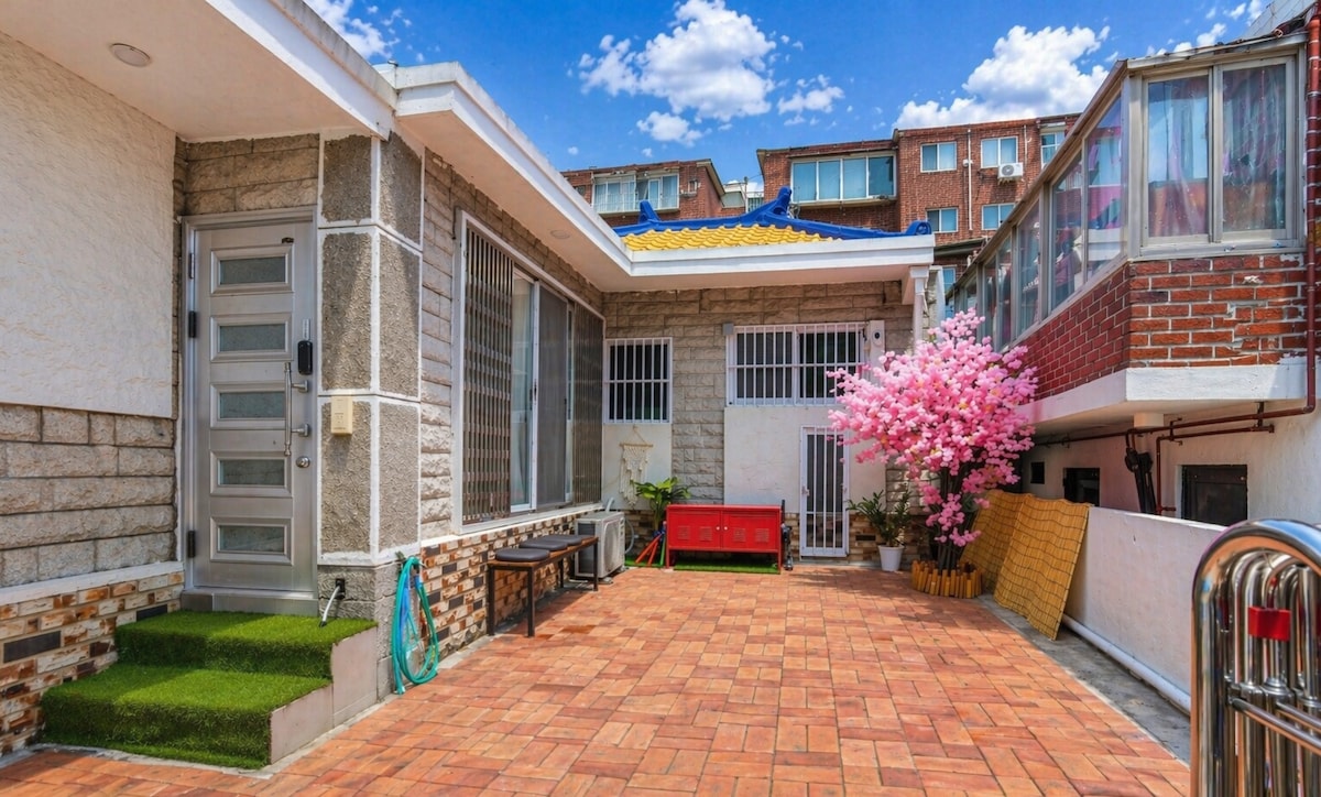 A private single-level Korean home with a yard and rooftop terrace. Three cozy bedrooms, two bathrooms, a bright living room, and a kitchen that opens to the garden for outdoor dining. Hotel-grade mattresses and fresh bedding ensure deep comfort, plus a Whirlpool dryer and generous towels. Relax with tea in the yard or sunbathe upstairs. Smoking allowed only outdoors. Built in the 1980s, the home has natural charm and occasional insects, but we clean with great care for a pleasant stay.