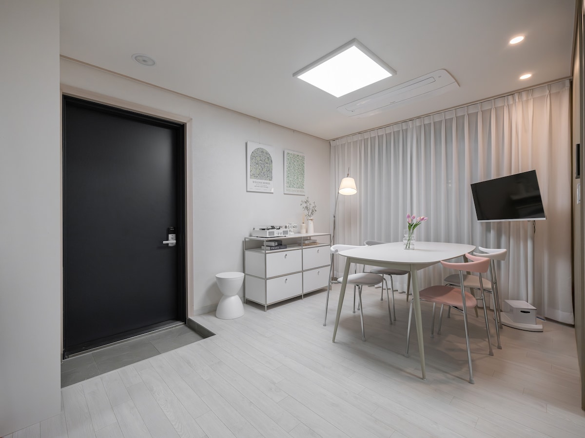 Fully furnished room available at a budget-friendly price in the heart of Myeong-dong! Just a 3-minute walk from Myeongdong Station Exit 4 (where the Incheon Airport bus stops). The path from the station is completely flat - no hills or stairs to worry about with your luggage! Perfect location in central Myeong-dong, with all the amenities you need for a comfortable stay. 명동역 4번 출구에서 도보 3분 이내 거리입니다. 오는길에 언덕이나 계단은 없습니다. 위치는 정말 최고에요! 숙소에는 생활하는데 필요한 모든 물품이 준비되어 있습니다.