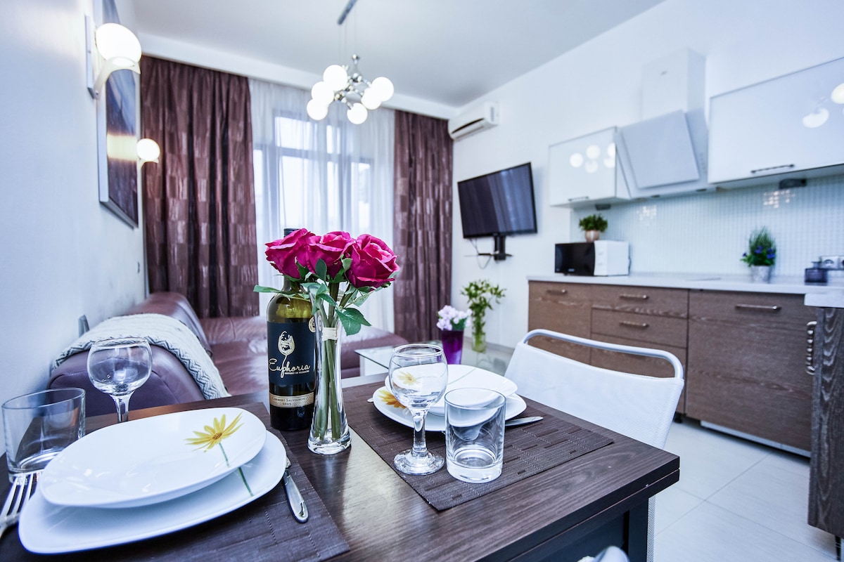 单间公寓位于市中心。 城市花园的阳台。按摩浴缸。.CityGarden公寓