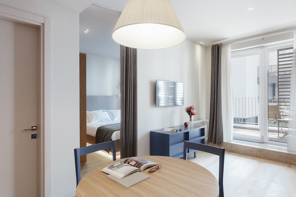 Проживання включає: - сніданки для двоїх проживаючих в італійському ресторані Elissa - відвідування SPA дві години в будь-який час (потрібне попереднє бронювання) - цілодобова стійка реєстрації - Wi-Fi і парковка - цілодобовий room service Особливості апартаментів: - комфортабельний номер площею 45 кв.м. - 1 вітальня, 1 спальна кімната, 1 санвузол - обідня зона з сучасною кухнею - італійський дизайн з елементами сучасного мистецтва - міні-бар, халати - ресторан і бар на території