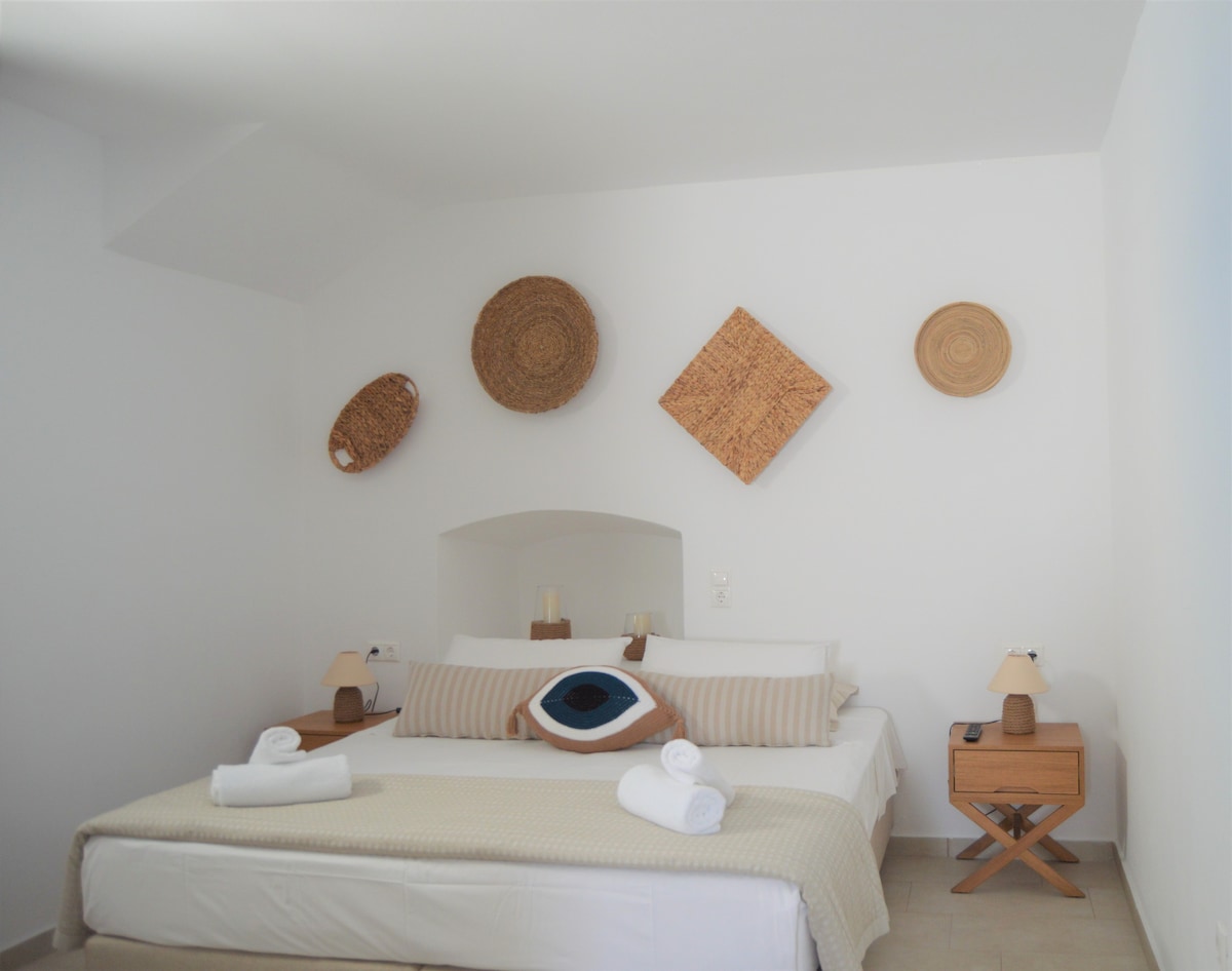 The seductive,brand new house is a luxurious heaven for tranquil repose, The Myconian's architecture house consists of 2 bedrooms with king size double beds (splittable to single beds), 2.5 bathrooms, living room with 1 sofa , satellite TV, free WI FI Internet - dining room, fully equipped kitchen, terrace with wooden table, outdoor jacuzzi , garden and private parking area.