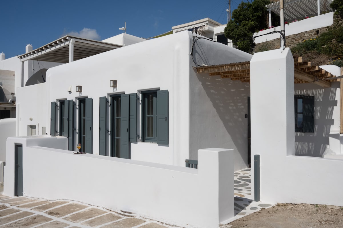 Blueisla Modern Mykonos townhouse! A house in the town with a private Parking. This newly renovated house is located in a tranquil area of the island and offers breathtaking views of the Aegean Sea. The house has all its necessary amenities upgraded and a terrace that gives a picture-perfect panoramic view of the Mykonos town, air conditioning that keeps the house ventilated even during the hot seasons of the year.