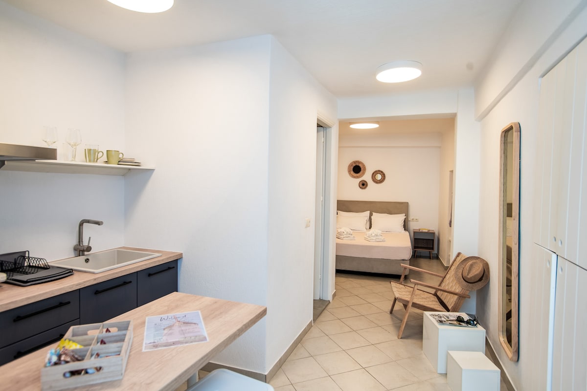 Perfectly located Cycladic house for up to four people overlooking the old port and beautiful sunsets. Fully renovated in 2021 and fully equipped with all the essential amenities, being ready to accommodate you. An ideal location to stay at the quietest neighborhood of Mykonos town and at the same time be only a few steps away from the center of it.