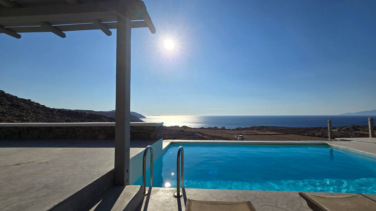 The villa can accommodate 4 (URL HIDDEN) features one bedroom with a king size bed and pull out sofa bed, 2 bathrooms with shower (one en-suite), a dining area and kitchenette(fridge, coffee maker, toaster). It also has a spacious private balcony with a view of Super Paradise beach and a private pool. It also has a 32'' satellite TV in the dining area and a 28'' satellite TV in the living room, as well as free Wi-Fi in all areas.