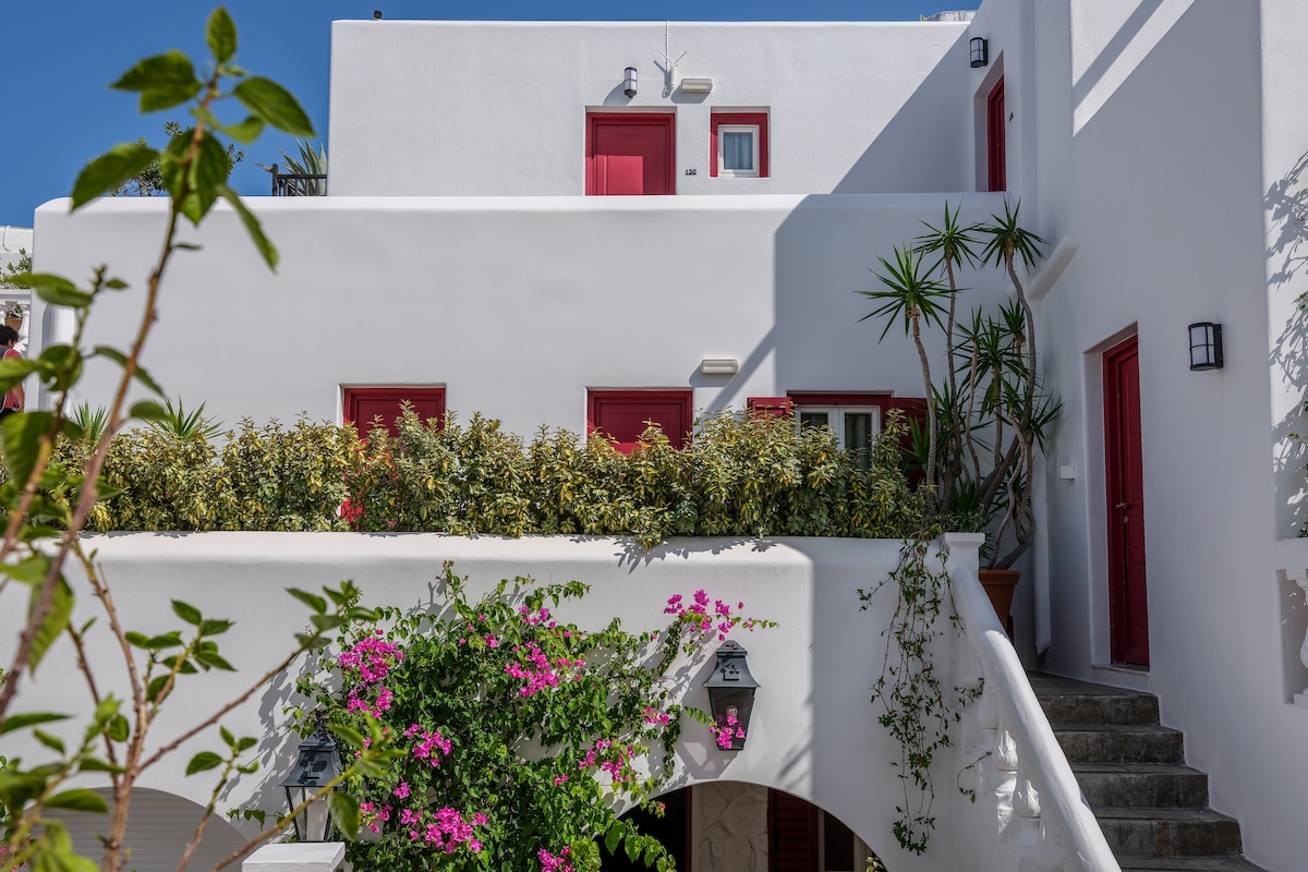 Immerse yourself in the authentic charm of Mykonos with our apartments, built in accordance with traditional Myconian architecture. Nestled in the heart of Ornos just a few steps from the Beach, our apartments offer a tranquil oasis amidst the vibrant energy of Mykonos. From the moment you arrive, you’ll be greeted with warmth and hospitality, ensuring your stay is as comfortable and enjoyable as possible.