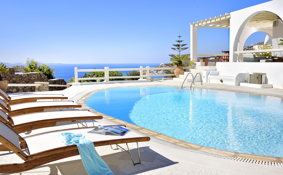 *This is the first year of Villa Anemi, please read our reviews from other Villas under my profile :) * You will love Villa Anemi, a private 4-bedroom 4-bathroom villa across 185 sqm which accommodates up to 10 guests. Located in Kanalia, right across the famous Town & Windmills of Mykonos, you can enjoy the views of your infinity pool, overlooking the islands of Tinos and Delos as well as the beautiful sunset!