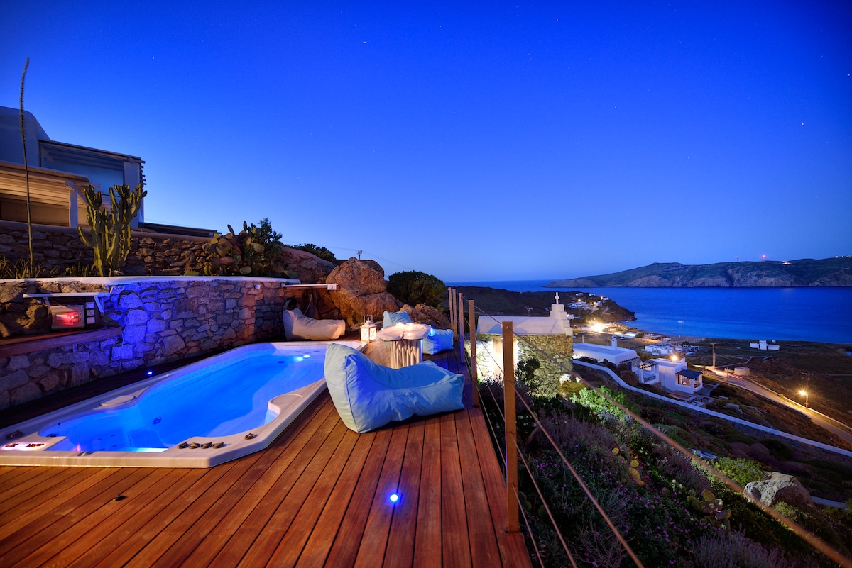 ✨Myconian Elegant Villa with Sea Views Located at the best location✨ Elegant, Artistic, roomy and stylish, 300Sq.m villa with a huge private Infinity pool 🏡Features: 🛏️4* Bedrooms (Queen Beds) 🛏️1* Double sofa bed 🚿4 Bathrooms 🧑🤝🧑Accommodates up to 10 guests Outdoor Amenities: 🏊♂️ 70 Square meters private infinity pool with breathtaking Aegean Sea views 🌅 Open-plan living area with sunset Views 🍖 BBQ and Outdoor Dining: Perfect for alfresco meals and gatherings.
