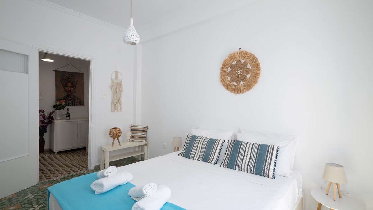 The room consist of a double-bed , mini bar, espresso coffee maker, smart tv, air conditioning and ensuite private bathroom with power shower. There is a private balcony with stunning views of Mykonos town and and sunset view every night of your stay. Free wi-fi is also available for all guests free of charge. The room is located a hundred (100) metres from the beach Restaurants and bars of Mykonos town centre.