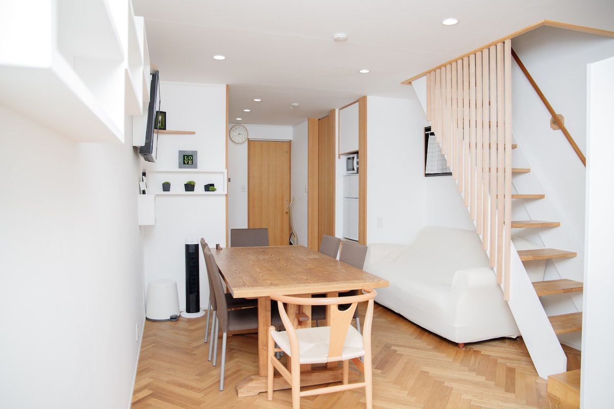E1京都四條河原町地點非常好128m2的3+1房可住4~10人有電梯,餐桌可坐10人一起快樂用餐聚餐
