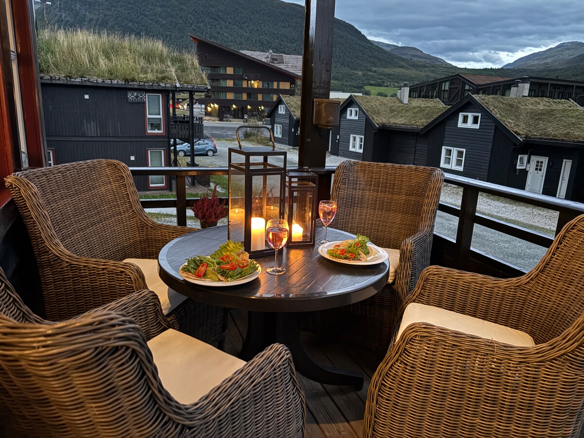Penthouse corner apartment with garage (charger for EV). The apartment has everything you need for a great stay. There are three bedrooms, and the master bedroom has an en suite bathroom. There are a total of two double beds and a family bunkbed. The view towards Svolefjellet is fantastic, and there are sunny outdoor spaces with a large terrace with a seating area, and funiture that can be used in the corridor at the entrance. Tilbake