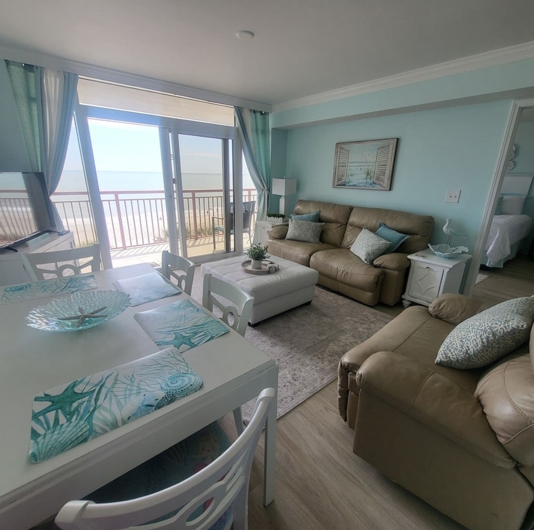 A bright, modern oceanfront retreat where everything feels simple and comfortable. Enjoy open views, a clean design, and an easygoing space made for slowing down by the sea. Top 5% rated in Myrtle Beach 🌴 Oceanfront Luxury — Seawatch Resort 1003 North Tower • 🌊 Floor-to-ceiling ocean views that make the beach feel front and center • 🛋 Bright, modern living space designed to feel open, simple, and comfortable • 🛏 Private bedroom with a comfortable king bed for restful nights • 🍳 Fully equ