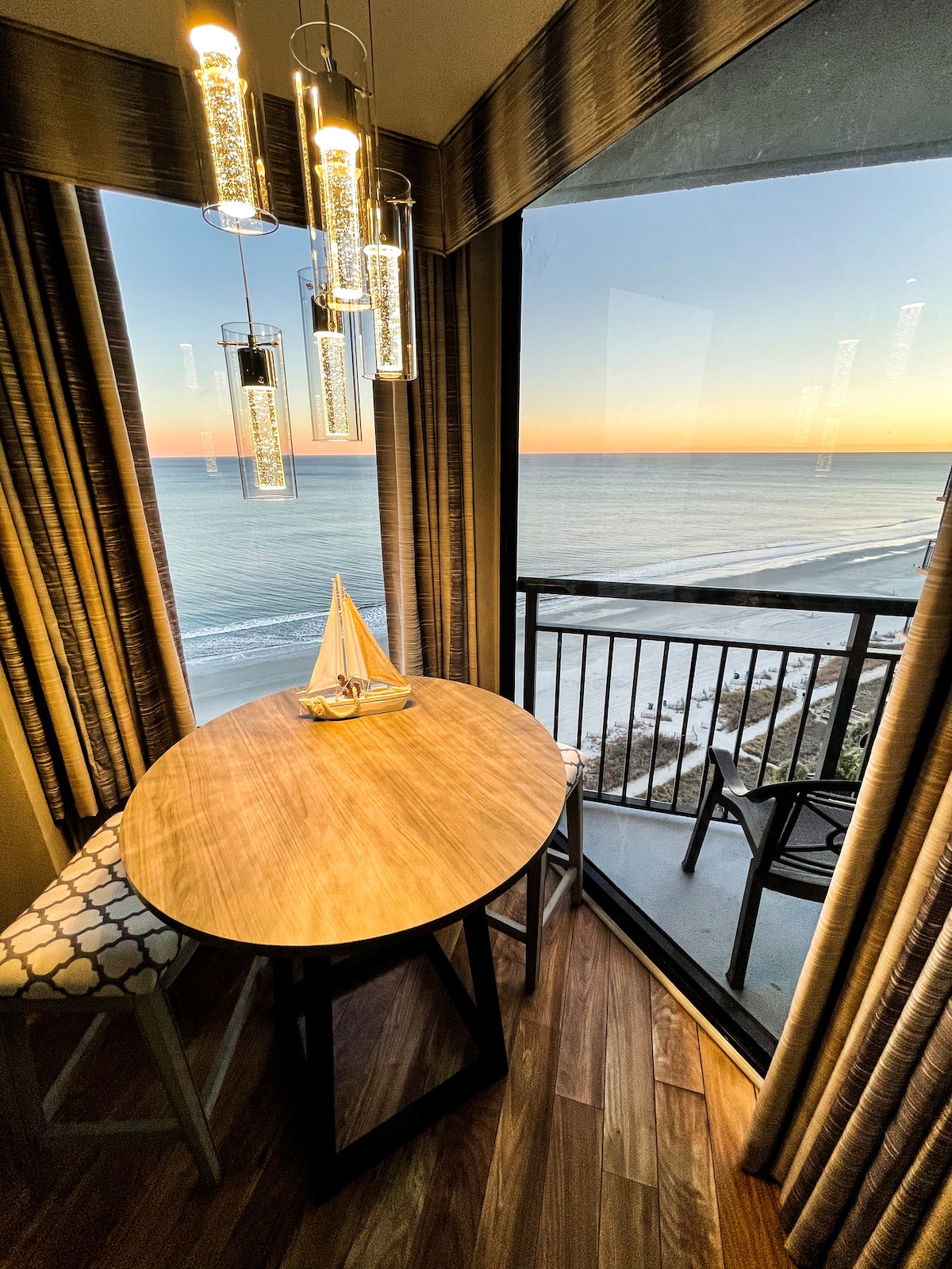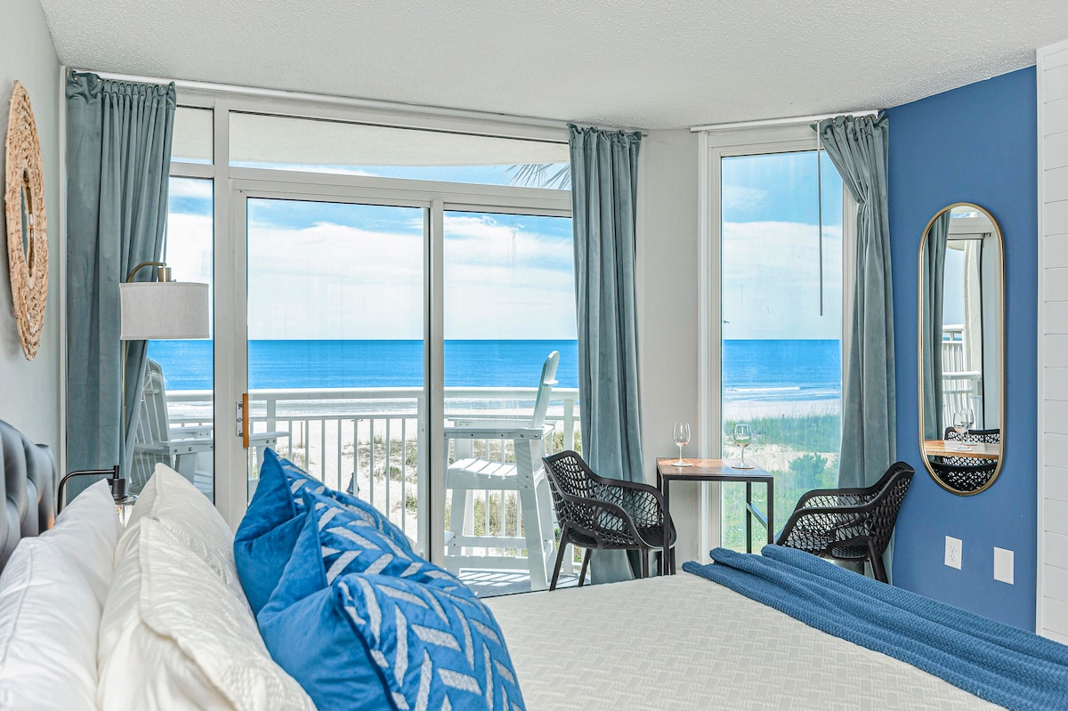 🌊 Discover this newly updated 2BR/2BA suite with breathtaking direct oceanfront views from every room. Located in the heart of Myrtle Beach, this spacious suite accommodates up to 10 guests, perfect for families or groups seeking relaxation and fun 🌅 Both bedrooms feature private balconies and the living room boasts wrap-around floor-to-ceiling windows , offering a 360-degree view of the stunning Atlantic Coast✨ Sip coffee on the balcony and listen to waves with relax and endless fun memories