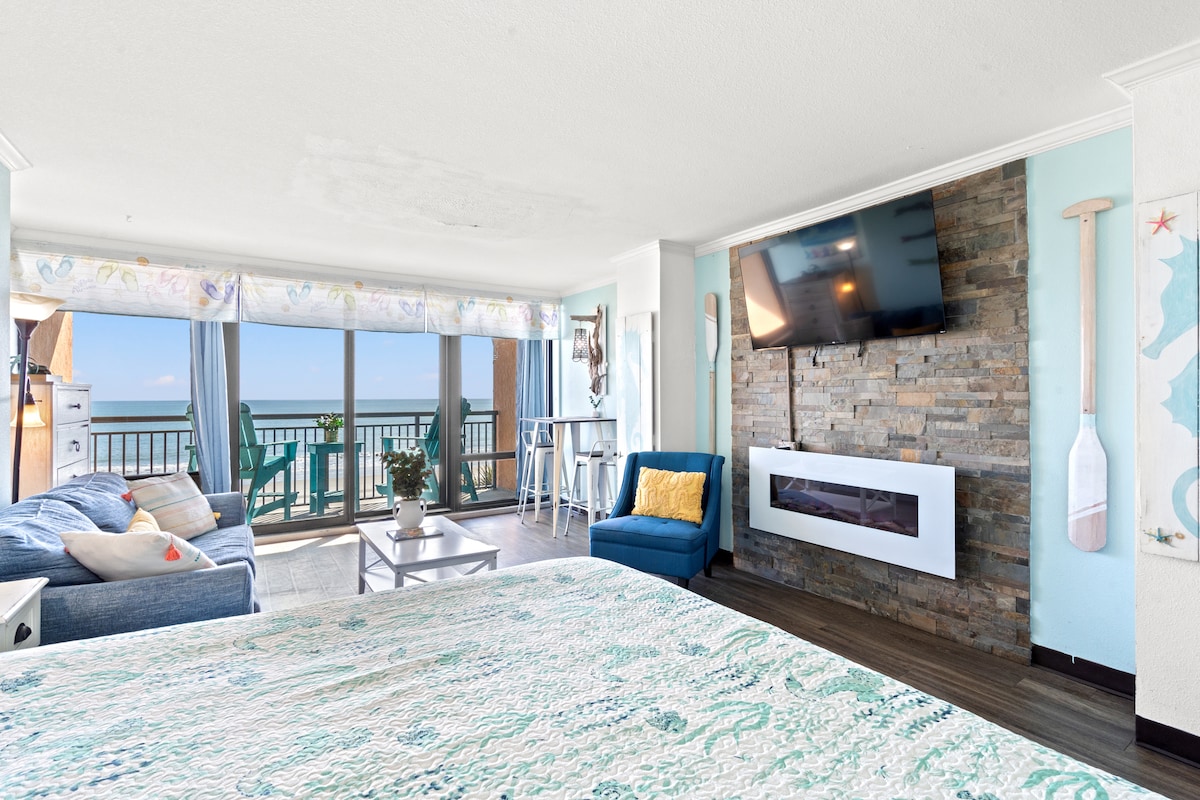 Wake up 21 stories above the Atlantic. Dolphins cruise past your balcony, sunrises light up the room, and the beach is steps away. This freshly updated oceanfront condo sleeps 4 with a full kitchen, ocean-view balcony, and access to indoor & outdoor pools. You're on a quieter stretch of sand but minutes from Broadway at the Beach, the SkyWheel, and great restaurants. The view you've been looking for.