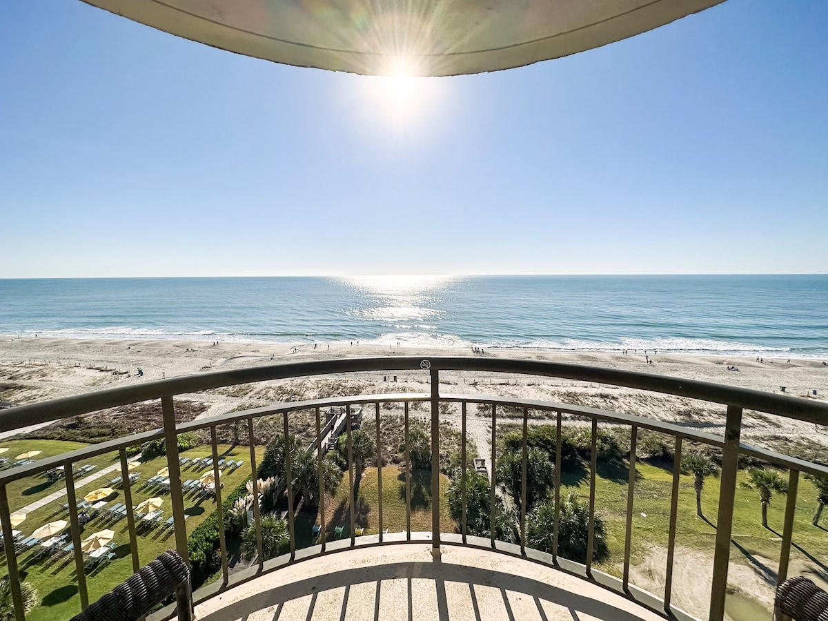 🌊 Discover this newly updated 2BR/2BA suite with breathtaking direct oceanfront views from every room. Located in the heart of Myrtle Beach, this spacious suite accommodates up to 10 guests, perfect for families or groups seeking relaxation and fun 🌅 Both bedrooms feature private balconies and the living room boasts wrap-around floor-to-ceiling windows , offering a 360-degree view of the stunning Atlantic Coast✨ Sip coffee on the balcony and listen to waves with relax and endless fun memories