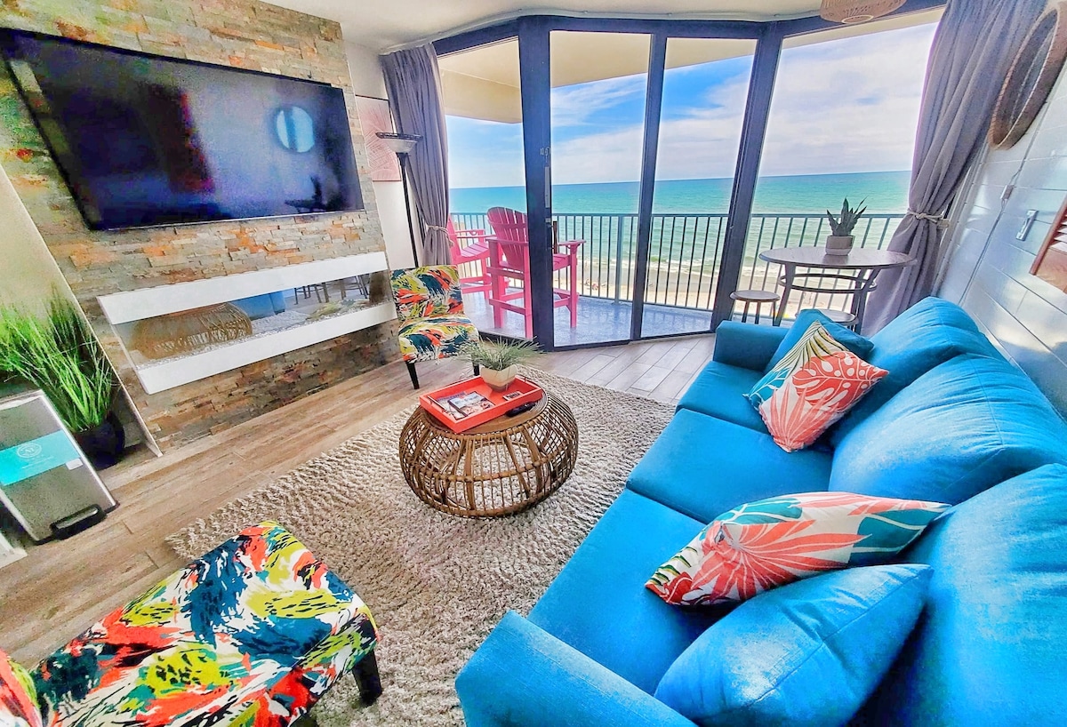 Enjoy your birds eye view of the ocean blue from this newly updated 14th floor condo. Listen to the rhythm of the waves with your coffee as you watch the sunrise on your own private balcony. Frolic in the waves all day with entertainment all night. Then retreat back to this modern cozy hideaway. Close to: MB Boardwalk/Skywheel, Broadway@theBeach, Market Commons, restaurants, shopping, golfing & the MYR airport. All are either walking distance or a short drive away. No car? Ubers are plentiful.