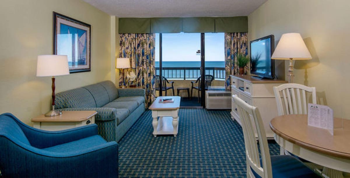Wake up oceanfront in this 11th-floor king studio at Caravelle Resort on Myrtle Beach’s Golden Mile. Designed for couples who want easy beach access without extra space, Simply SUNsational features a king bed, a well-equipped kitchen, and a private balcony overlooking the Atlantic Ocean for morning coffee or evening views. Enjoy all our resort amenities and see why this condo continues to be a couple's favorite.