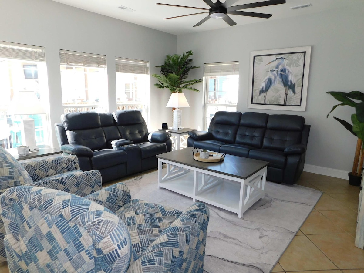 Come and enjoy this beautiful private beach TOWNHOUSE. First floor is the kitchen, living room, dining room half bath and balcony! Second floor 2 bedrooms just added roll away bed for extra sleeping with a full bath, washer & dryer and a balcony! Third floor is a master bedroom with a private bath and a wet bar, private balcony! 4 smart TV's for streaming . Private parking underneath & in parking lot. NO SMOKING. beach chairs, towels umbrella supplied. Message me for winter monthly discounts!