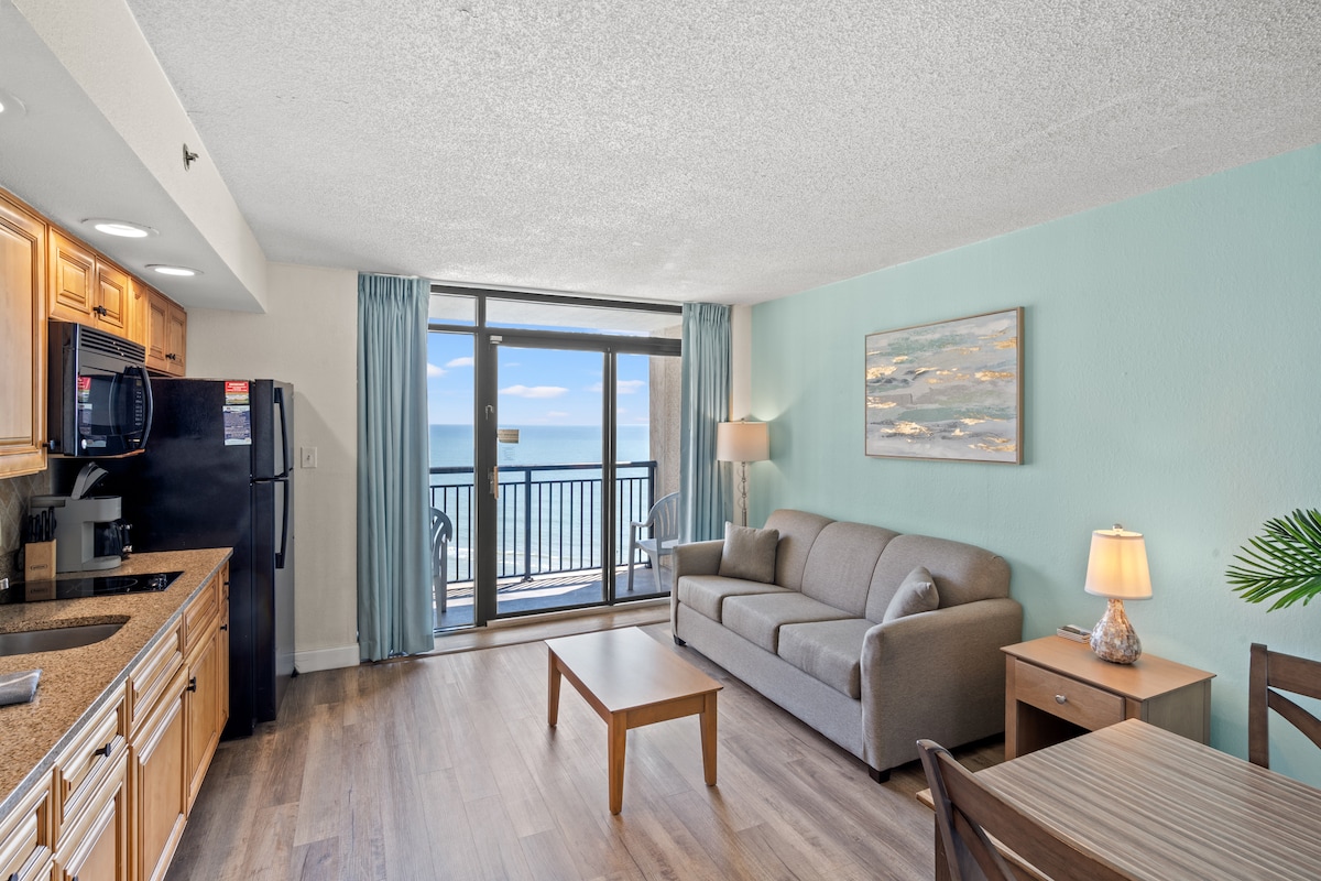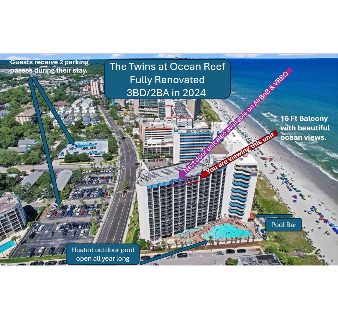 ⭐ Ocean View ⭐ Private beach access ⭐ Free Parking ⭐ Pristine cleanliness Enjoy ocean views from our newly renovated angled condo at oceanfront Bluewater Resort — with private beach access and a prime Myrtle Beach location. Resort amenities include outdoor pools, hot tubs, a heated pool, lazy river, dry sauna, gym, lobby lounge, poolside food and drinks, on-site restaurant, laundry facilities, and an arcade. Snowbird winter specials available Please note: the indoor pool is temporarily closed.