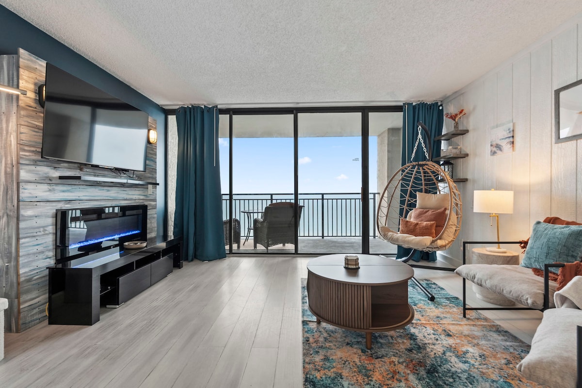Enjoy your birds eye view of the ocean blue from this newly updated 14th floor condo. Listen to the rhythm of the waves with your coffee as you watch the sunrise on your own private balcony. Frolic in the waves all day with entertainment all night. Then retreat back to this modern cozy hideaway. Close to: MB Boardwalk/Skywheel, Broadway@theBeach, Market Commons, restaurants, shopping, golfing & the MYR airport. All are either walking distance or a short drive away. No car? Ubers are plentiful.