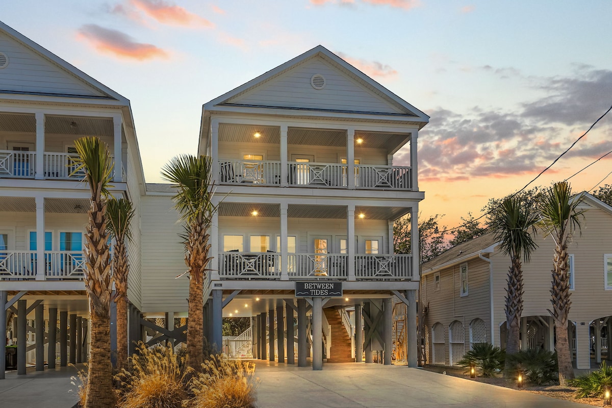 Between Tides is a one of a kind designer 5-bedroom beach retreat in Garden City just steps from the beach. Sleeping 12, this upscale home features a private saltwater pool, a breathtaking custom mural by a local artist, a signature selfie photo wall, and high-end modern furnishings exceeding your average vacation rental. Every detail has been intentionally curated to create a space that feels as special as the memories you’ll make here. From the moment you walk in, you’ll feel it!