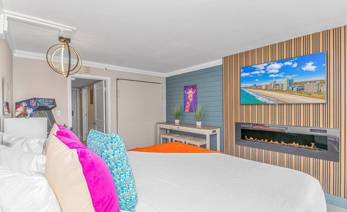 默特尔海滩海景1卧室,带壁炉和拱廊