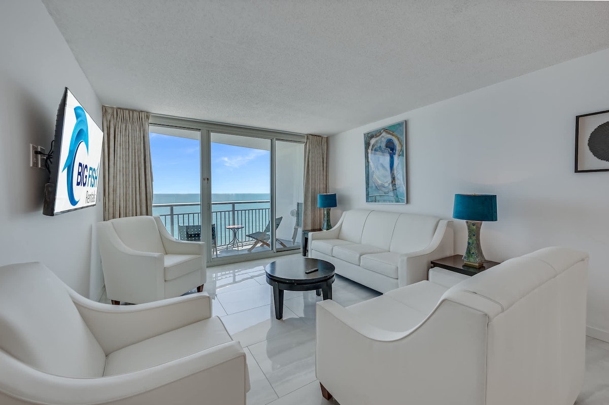 Relax with sweeping ocean views and an easygoing space designed to help you unwind. Enjoy your private balcony, simple comforts, and Seawatch’s pools just steps away. • 🌊 Oceanfront views that instantly slow you down • 🌅 Private balcony for morning coffee and quiet evenings • 🛏 Comfortable king bed with soft linens for restful, uninterrupted sleep • 🛋 Relaxed living space that feels easy, open, and uncluttered • 🍳 Fully equipped kitchen for simple meals and stress-free mornings • 📺 Smart