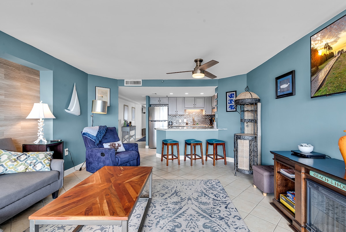 Escape reality at this spacious, true 1 bedroom, custom designed condo with breathtaking views. Begin your day by enjoying the sunrise from the private balcony with a fresh cup of coffee or while walking the water's edge right outside your door. Spend your afternoons relaxing at the beach, soaking in the many pools or dolphin spotting from the condo. In the evenings, check out the great restaurants and attractions of the area; or relax inside and take advantage of the fully loaded kitchen.