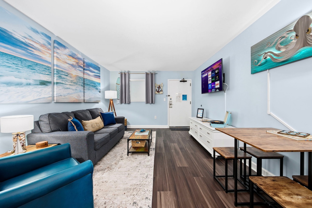 ༄THE BEST location: mere steps to the beach, walkable to the boardwalk, minutes to shops, restaurants + attractions ☼In a highly-regarded resort that's been voted Top Resort for 2 years in a row 𓇼Water attractions: Pools, Hot tubs, Lazy River, Kid's pool with pirate ship + Slides ☼Outdoor Shuffleboard, Cornhole, Giant Checkers + sun loungers 𓇼Equipped kitchen w/blender, coffee & waffle maker ༄ Board games, pack n play, high chair, Beach chairs & toys ☼Walk to Starbucks 𓇼Smart TVs ༄King Bed
