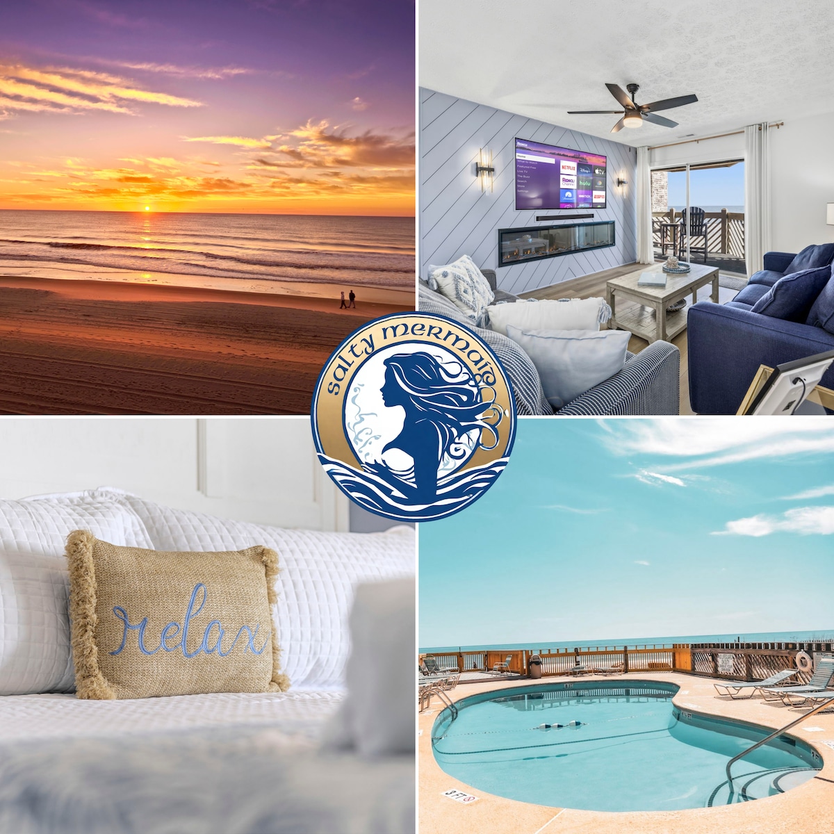 Newly Remodeled flooring and furniture! Pools are heated indoor and outdoor pools all winter long! Key Features of this condo include: * Oceanfront One Bedroom at Sandy Beach Resort 10th Floor * 2 Queen Beds, with Murphy Bed, Sleeps up to 6, sheets provided * Private Bathroom * Fully Equipped Kitchen, with Kitchen Table * High-speed FREE Wi-Fi * FREE Parking * Indoor and Outdoor Pools, Lazy Rivers and Hot Tubs * Short walk to 2nd Avenue Pier