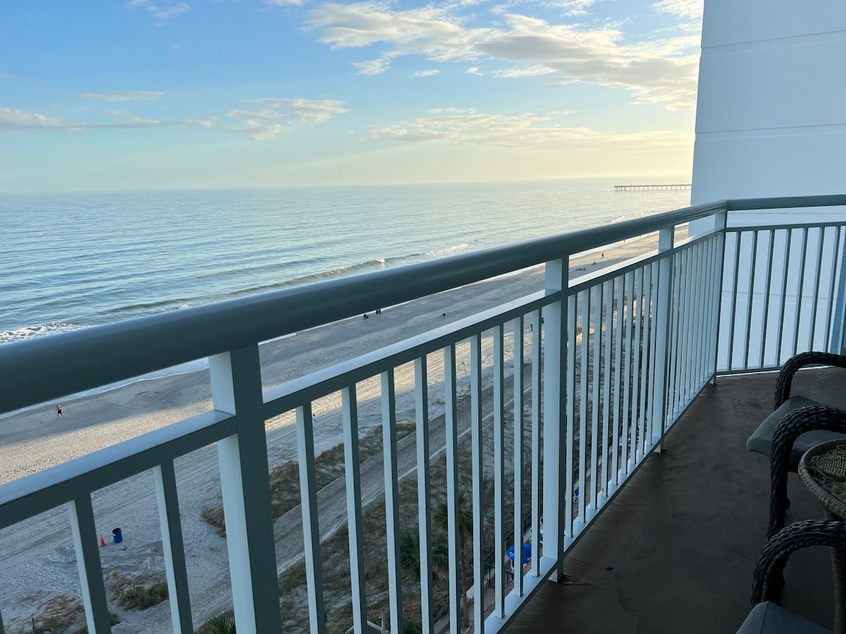 HIGHLY REQUESTED "PARLOR" UNIT, THESE ARE LIKE NO OTHER IN MYRTLE BEACH, OFFERING 260 DEGREES OF OCEAN VIEWS WITH A WRAP AROUND BALCONY TOTALING 300SQ FT OF BALCONIES, 2-30 FT LONG BALCONIES WITH 3 SLIDERS, OCEAN AND SUNSET VIEW, THE UNIT IS OPEN AND LARGER THAN MOST ALL 1 BRS, 2 QUEEN BEDS, SLEEPER, UNIT WRAPS AROUND WHOLE SOUTH SIDE OF BUILDING, FULL KITCHEN, BATH, 6OO SQFT LIVING SPACE WITH 300 SQFT FOOT OF BALCONY , THERE IS NOTHING ELSE LIKE IT