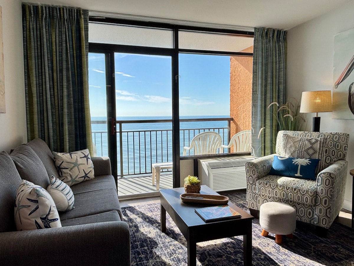 Welcome to "The Sea Urchin" a Myrtle Stays Property in Myrtle Beach Includes - Private Oceanfront Balcony - Indoor Fireplace - Heated Pools, Lazy River & Hot Tubs (indoor/outdoor) - K-Cup & Drip Coffee Makers - Fully Stocked Kitchen with full-size fridge, stove & microwave - Sleeps 6 – 2 luxury queen beds + sofa sleeper - Premium Linens & Pillows * Free Wi-Fi & Desk - Free Parking with 24/7 Security - Walk to Beach, Starbucks & Restaurants Perfect for couples, families, or business travelers!