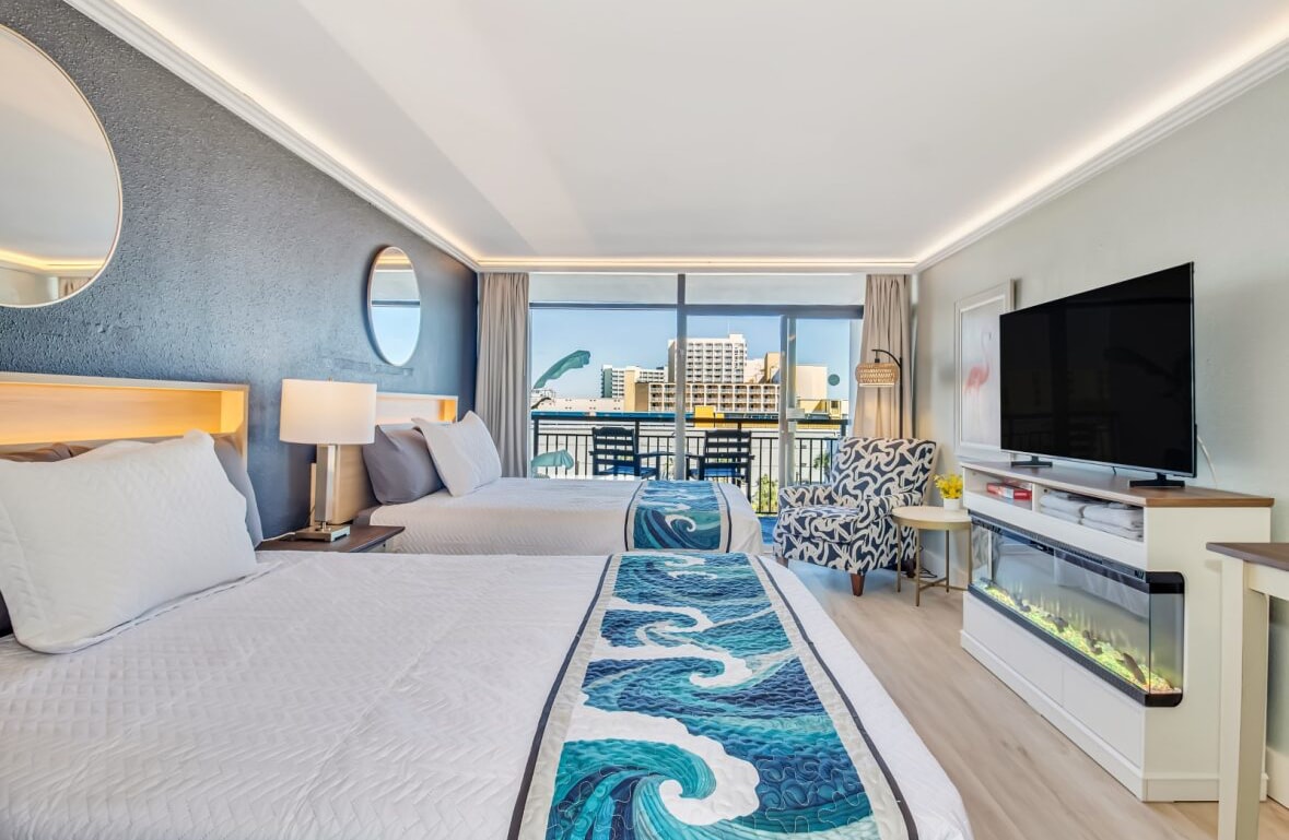 🌊 Discover this newly updated 2BR/2BA suite with breathtaking direct oceanfront views from every room. Located in the heart of Myrtle Beach, this spacious suite accommodates up to 10 guests, perfect for families or groups seeking relaxation and fun 🌅 Both bedrooms feature private balconies and the living room boasts wrap-around floor-to-ceiling windows , offering a 360-degree view of the stunning Atlantic Coast✨ Sip coffee on the balcony and listen to waves with relax and endless fun memories