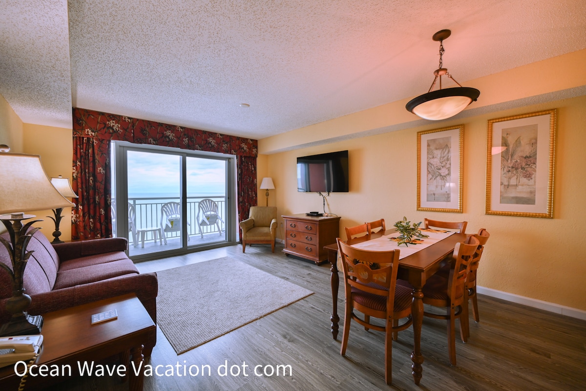 Welcome to “The Ocean's Cove” a Myrtle Stays Property in North Myrtle Beach. Amazing End Unit Panoramic Views Amenities Include: - 2 Queen beds in Main Bedroom - Full Bathroom with double vanity, toilet, and Shower/Tub. - Stocked Kitchen: * Full Refrigerator * Stovetop Burners * Drip Coffee Maker * Sink * Microwave - 1 Queen Sofa sleeper in Living room - 3 Outdoor Pools (Seasonally Heated) - Lazy River 350ft - 2 Outdoor hot tubs - Indoor pool and hot tub - Centrally Located