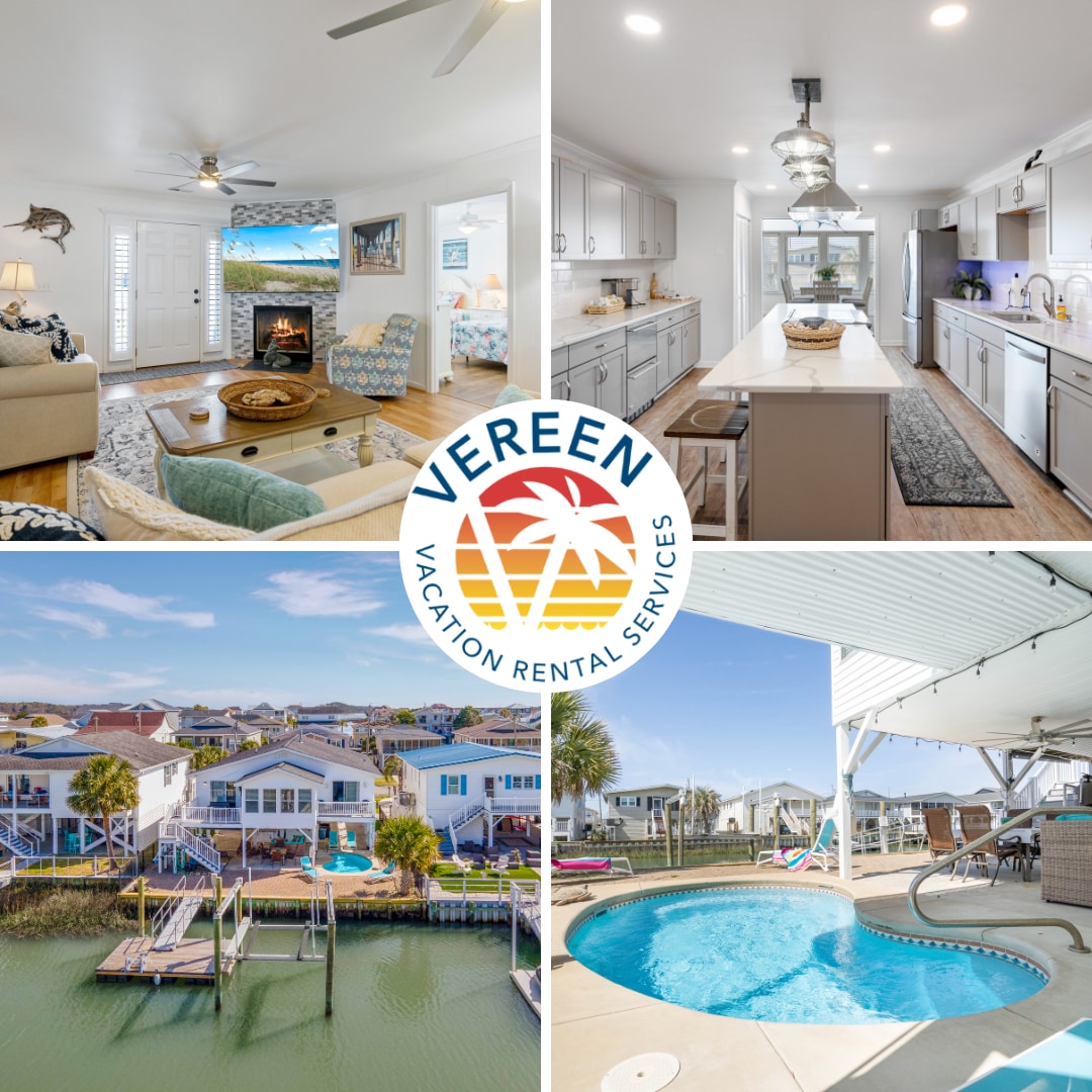 New Listing! We want to welcome you to Long Summer II. A fully remodeled and tastefully designed 4 bedroom beach house located on the channel in Cherry Grove. Just a 5 minute walk to the beach, this home comes with its own private pool! Try fishing from our private boat dock or hangout by the outdoor bar area and kick back and relax. While you are relaxing take a few strokes off your short game by practicing on our outdoor putt putt area. This house is an outdoor lovers dream! See for yourself!
