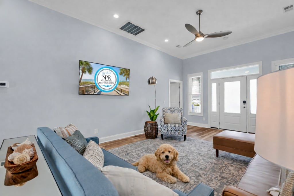 豪华私人泳池,允许携带狗狗入住,步行6分钟即可抵达海滩
