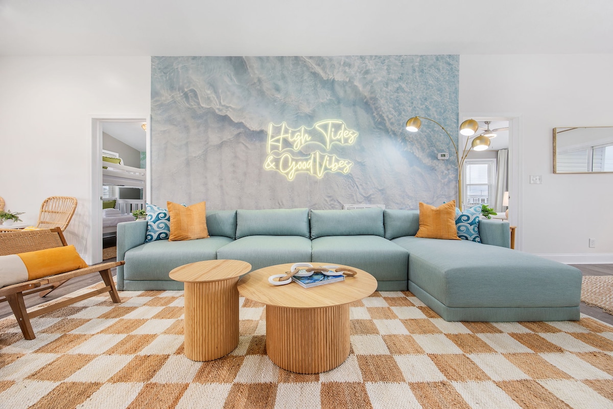 Family fun for all ages, located near the beach and intercoastal waterway. Safe central location with colorful artsy fun! New 2026 pinball. Lavish modern décor with comfortable King & Queen bedrooms. A short drive to family favorite Cherry Grove Beach. High tech sound & lighting systems, Dolby Atmos, LG OLED TVs, streaming & PS5 game system, arcade, foosball and new pinball machines. Tesla car charger. Full featured gourmet kitchen, Weber charcoal grill, and fire pit. Ready for play!