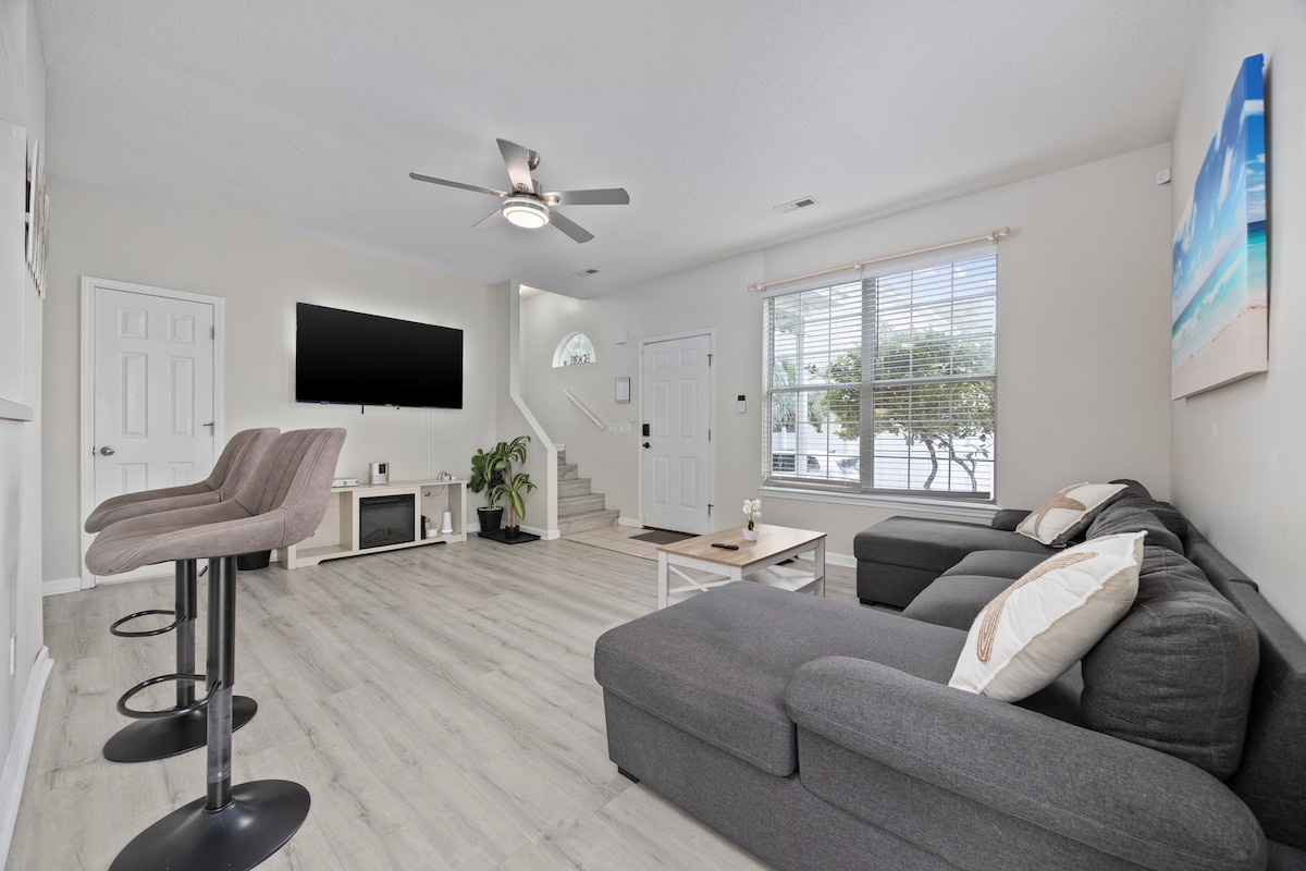 Welcome to our Beach House! Happily named Tag Along. Completely remodeled Beach style house, with brand new furniture, electronics, stainless steel appliances, granite countertops, real hardwood floors etc. The house is one block away from the Beach & Ocean Blvd. Our Rental Features: -Gas Golf Cart. (Rental companies charge hundreds per day for cart rentals in summer) -Bedroom #1: Two Queen beds. Attached bathroom. 50”4K Ultra Smart TV - Bedroom#2: One Queen & One Triple Bunk Bed with Three Twin mattresses (kids only! Max weight 160lbs per bed) 50” 4K Ultra smart TV -Bedroom#3: One Queen & a 40” 4K Ultra Smart TV -Living Room: Beach Style furnishings with sectional sofa & 65” 4k Ultra smart TV -Fully Equipped Kitchen with Brand new Stainless Steel Appliances, Granite countertops, plates, bowls, utensils, pots pans, Etc. Kuerig coffee maker & Margarita blender -Linens and Towels & washer & Dryer -Beach Chairs & Umbrella -Free parking pass for Downtown/Boardwalk/Family Kingdom. (Parking is $10-$20 in these areas) -Two Full Bathrooms -Outside Patio with Table & Tiki Umbrella & Gas Grill & picnic table, Cornhole, Tiki Toss, Fire pit