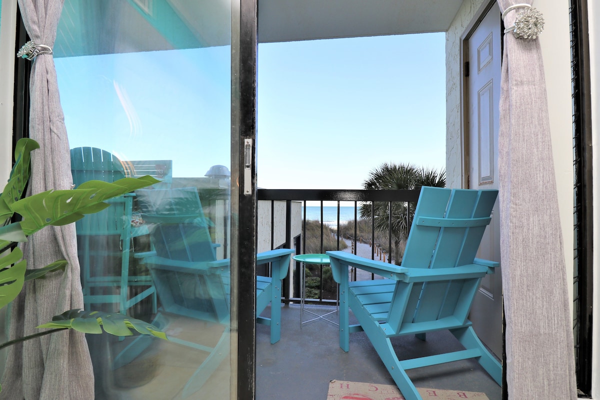 Totally Beaching - Unit #2 is one of 4 spacious condos located a block from the beach & 2 blocks from the fishing pier in the heart of historic Cherry Grove. Each unit is 900sf with 2 bedrooms, one bath, full kitchen and living room with front and rear porch access. The rear porch overlooks a natural pond teeming with wading birds and other wildlife. Guests are provided the essentials: bed linens, towels/bath clothes, cookware, and keurig coffee maker. Unit #2 is on the 2nd level right.