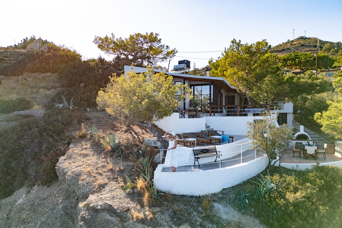 Welcome to your dream villa, built in contact with a rock formation! This residence offers two bedrooms with private en-suite bathrooms. (1 with extra sofa bed) The villa is situated on an 6000m2 plot filled with pine trees and olive groves. Several steps lead down to your secluded beach.The kitchen and the dining room in the aithrio feature panoramic sea views.The outdoor spaces of 120 m2 include a sitting area protected by a shading pergola,sun loungers an outdoor dining place,barbeque, shower