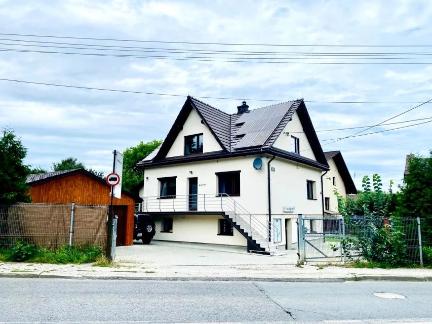 We invite you to our Zarabie Residence. The villa is located 20 minutes from Cracow and 80 minutes from Zakopane by car. We offer 5 bedrooms for 17 people , 2 bathrooms, an equipped kitchen with a dining area, a living room with a bar and a fireplace. Our guests can use the grill and the jacuzzi and sauna located in the garden. The villa is located in a quiet, green area. Nearby you can find grocery stores, restaurants, a swimming pool, a ski lift, a park with playgrounds for children.