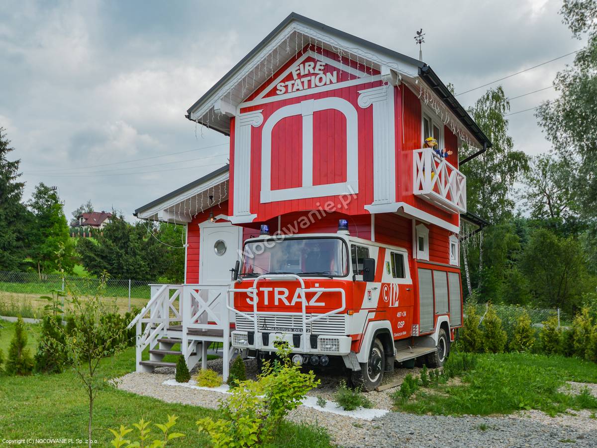 Spełnienie dziecięcych marzeń !!! Zapraszamy do Wozu Strażackiego. Jest to absolutnie wyjątkowy i niepowtarzalny obiekt , jakiego nie spotkacie nigdzie indziej , ani w Polsce ani na świecie. Domek powstał na bazie prawdziwego , zabytkowego wozu strażackiego marki Magirus Deutz z 1972 r. Domek, w którym Wasze dzieci , a być może Wy sami zrealizujecie marzenia , aby chociaż przez kilka dni poczuć się prawdziwym strażakiem. Każdy kto do niego zawita , zapamięta to na długie lata.