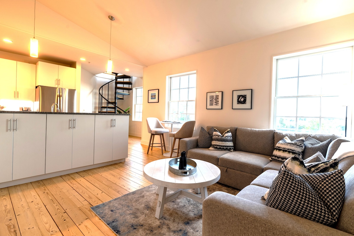 A schoolhouse from 1909—now sleek, restored, and redesigned. Two large beds, two luxe-filled baths, brick and archways, timeless paths. A short stroll brings you Mystic’s best: shops and seafood, wine and rest. Perfect for love or friends who roam—with space to breathe, you’ll feel at home. Sip Prosecco, sleep in bliss—no retreat more sweet than this.