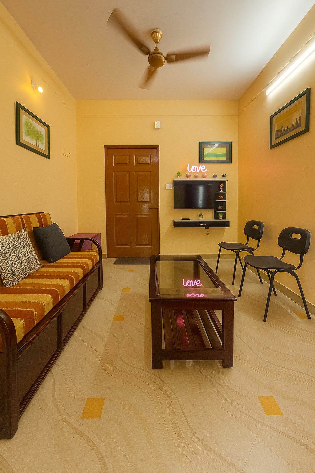 Athira Residency – Spacious Family Apartments in the Heart of Kushalnagar, Coorg Your perfect home away from home in the heart of Kushalnagar. All major tourist attractions are just 5–6 km away. Our luxurious, fully furnished apartments are designed for comfort and convenience, perfect for families, groups of friends, or large gatherings. Each flat can comfortably accommodate 10–12 guests, offering plenty of space to relax and enjoy your stay together.